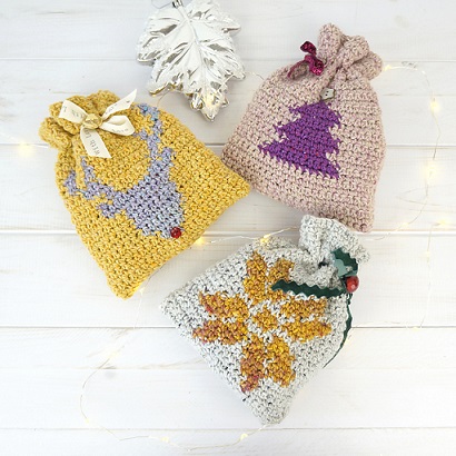 3 – Christmas Gift Bags di Little Doolally sono dei sacchettini a maglia bassa con varie decorazioni natalizie da disseminare per casa. Perfetti per chi vuole approcciarsi alla lavorazione a più colori senza doversi impegnare in progetti lunghi e/o difficili.