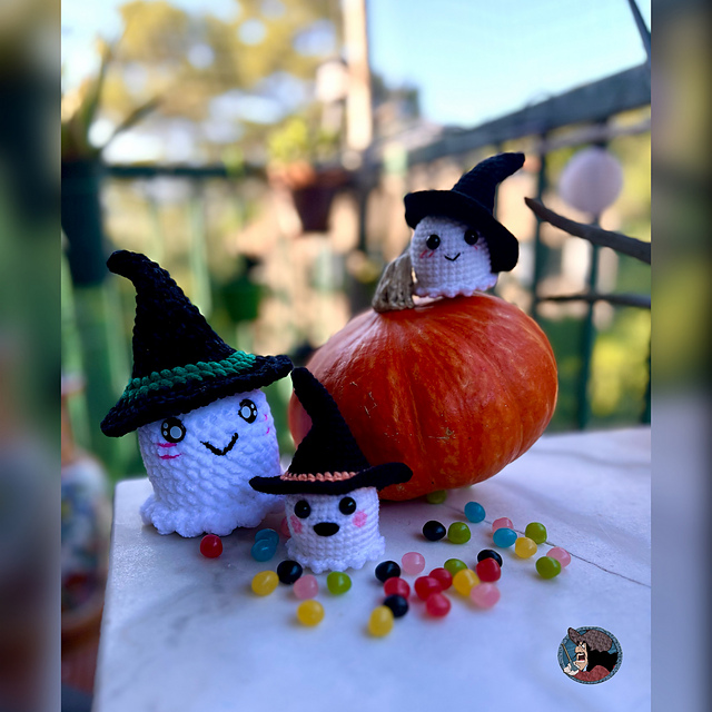 - Piccoli amigurumi a forma di fantasma, perfetti così o da usare come portachiavi, aggiungendo un gancetto. Il modello, a uncinetto, è in inglese, a pagamento, ed è accompagnato da un tutorial fotografico.