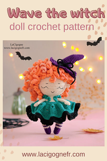 - Una adorabile streghetta che ricorda un po’ Felinia, sempre a uncinetto, in inglese, a pagamento. (Vi farà piacere sapere che vende anche il modello di un gabbiano amigurumi).