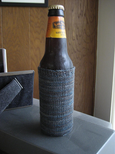 - Garter Coaster Beer Cozy: dimentichiamoci i mug cozy o i tea pot cozy. Andiamo direttamente su una bella bottiglia di birra!