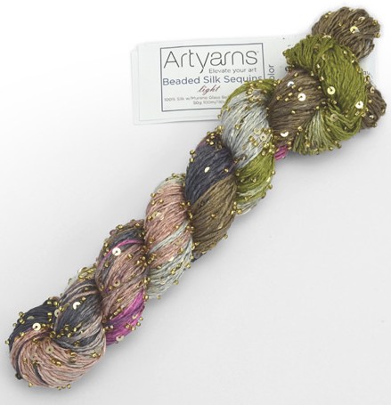 6. Per chi ama i filati preziosi, nulla di meglio di una matassina di Beaded Silk & Sequins Light di ArtYarns. Il filato è letteralmente “costruito” a mano inserendo una a una le perline di vetro di Murano e le paillettes sul filo di seta 100%. Una matassina da 50 grammi è lunga solo 100 metri, ma non ne serve molta di più: anche solo una sottile bordura in questo filato inserita a chiudere i polsini e il collo di un cardigan in un filato comunque raffinato ma più “normale” o a orlare uno scialle renderà il capo prezioso. Costa 49,99 euro.