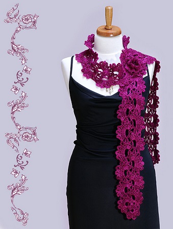 Passiamo alle sciarpe, in questo preciso istante sta facendo impazzire le folle la coda di drago, ma anche la Queen’s Anne lace si difende bene, con il ritmo di un corso e ricorso storico. Per inciso, la sciarpa Queen’s Anne lace non è tanto un modello quanto un pizzo che si trova facilmente su qualsiasi dizionario riproposto come sciarpa.