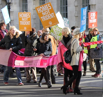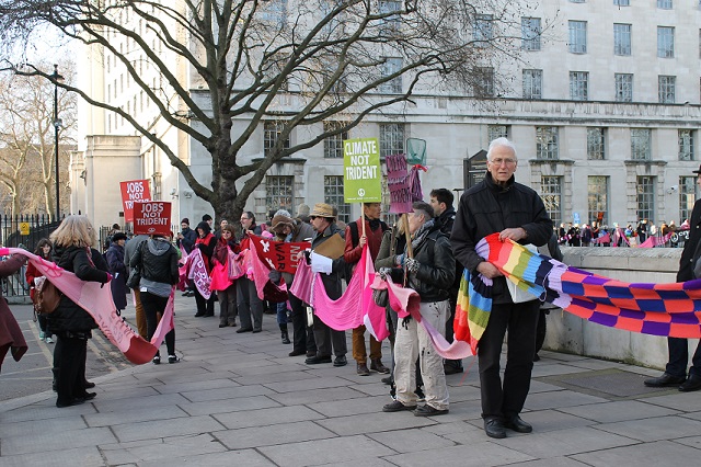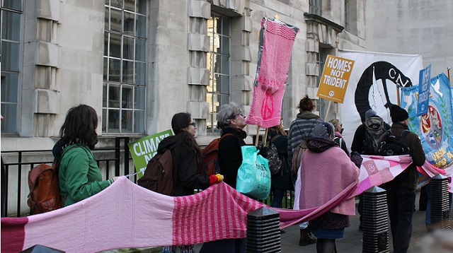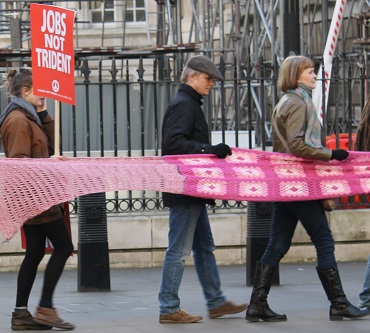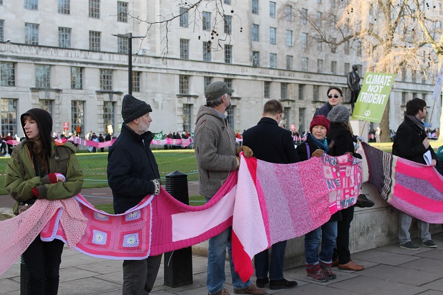 Ricordate la manifestazione contro i finanziamenti ai sommergibili armati con missili nucleari fatta a Londra? Durante la manifestazione, i palazzi governativi sono stati avvolti da una sciarpa gigante fatta a mano dai partecipanti.