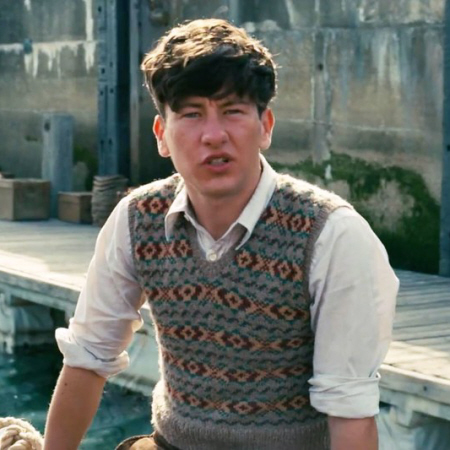 Barry Keogan indossa invece un gilet in stile Fair-Isle (un po’ piccolo, a suggerire che possa risalire a qualche anno prima). Questo tipo di maglione era stato portato al successo alla fine degli anni Venti dal futuro Edoardo VIII. Si tratta di capi lavorati tassativamente in lana Shetland, caldissimi anche se leggeri. Anche se il risultato è vivacissimo, questi gilet sono lavorati usando sempre non più di 2 colori in ogni giro. Uno dei nostri preferiti è Bruntsfield di Ysolda Teague, rigorosamente unisex.