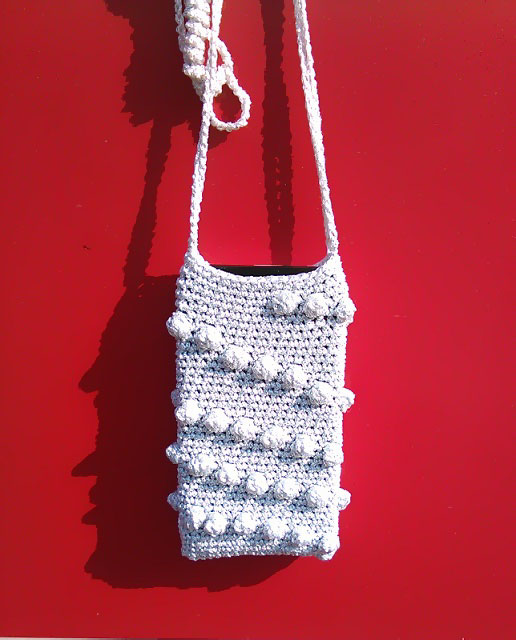 Realizzando quel cappello, ho pensato che mancasse un videotutorial su petali e noccioline all’uncinetto, quindi con Oggi.it abbiamo fatto pure quello. E dato che è estate e a me piace il lamé, usando Gatsby di Katia ho scritto il modello di Larry Lurex, un portacellulare a maglia bassa con noccioline, che è un esercizio da realizzare per capire se vi sono chiare le istruzioni del video, che potete guardare qui.
