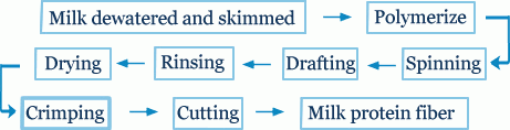 Il latte contiene una serie di proteine, tra cui la caseina, responsabile tra le altre cose della consistenza dei formaggi. La caseina può essere estratta dal latte con un semplice procedimento riproducibile anche in casa con latte caldo e aceto o succo di limone. Il risultato è una sostanza caseosa (appunto), affine alla ricotta o al paneer (il formaggio fresco indiano), manipolabile e plasmabile a piacere. Questa sostanza, ricavata in laboratorio con procedure controllate, viene quindi ulteriormente trattata per ricavarne la galalite, una delle più antiche plastiche, usata fin dagli anni Trenta per produrre una vasta gamma di articoli. Negli anni Trenta Snia Viscosa mise appunto un procedimento che permetteva di produrre una fibra tessile artificiale chiamata Lanital (negli USA fu registrato un prodotto quasi indentico con il nome Aralac). Il Lanital fu molto spinto ai tempi del regime fascista per ovviare alla scarsità di lana indotta dall’embargo e dall’autarchia, ma era pochissimo apprezzato, tant’è che quando nel dopoguerra la Snia Viscosa cercò di rilanciare la fibra con il nome di Merinova ebbe pochissimo successo. Da qualche anno sono stati introdotti nuovi metodi per la produzione di questo tipo di fibra che l’hanno resa più morbida e gradevole e numerose filature l’hanno adottata, anche se la trasformano in filati in mescola con altre fibre (lana e cashmere ma anche acetato di bambù).