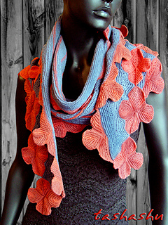 Knitted scarf Sevilla è una fantastica sciarpa-stola modulare di Svetlana Gordon, impreziosita da fiori realizzati con la tecnica dei ferri accorciati.