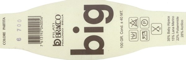 Un’ultima annotazione è quella relativa alla cartella colori: Big è distribuito solo in tinte naturali, ovverosia la fibra naturale che lo compone è stata lavata, cardata ma non decolorata o tinta. Questo contribuisce anche al leggero odore di “animale pulito” che la caratterizza: non ammazatelo con lavaggi troppo profumati, ve ne preghiamo! Un buon bagno in poco detergente delicato sarà sufficiente a eliminarlo. Big non è particolarmente economico, a 10,50 euro per gomitolo da 100 grammi e 40 metri, ma è e resta un filato piacevole e veloce da lavorare: l’ideale per un progetto dell’ultimissimo minuto.