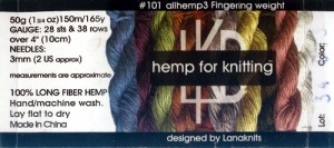 Hemp for Knitting è il marchio con cui Lanaknits produce filati in pura canapa o misto canapa  e lana. Si tratta di filati di alta qualità con una fibra dai molti pregi intrinsechi e per l’ambiente. QuestaAllHemp 3 è un filato in canapa pure in peso fingering a tre capi ed è uno dei suoi prodotti di punta, un filato sottile, leggero e fresco (ma attenzione che la canapa è di per sé una fibra più calda delle altre fibre vegetali) che produce un’eccezionale lavorazione traforata grande alla sua ottima definizione del punto.