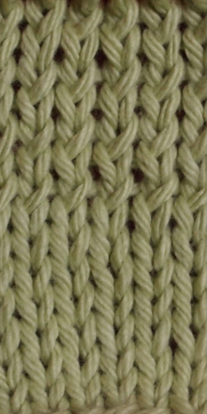 Capita relativamente spesso lavorando Continental di eseguire quello che Elizabeth Zimmermann chiamava “rovescio facile” e che di fatto si esegue come il rovescio Combination illustrato qui sopra. Lavorando queste maglie normalmente nel ferro successivo (a diritto), cioè prendendole nel filo anteriore, si producono ferri di maglie ritorte come quelle illustrate nella foto qui accanto. Al contrario di risolvere il rowing out, questo risulta in una lavorazione ancora più irregolare. In questo caso i ferri lavorati a rovescio si accorciano, mentre tutto il lavoro prende un’inclinazione verso destra.