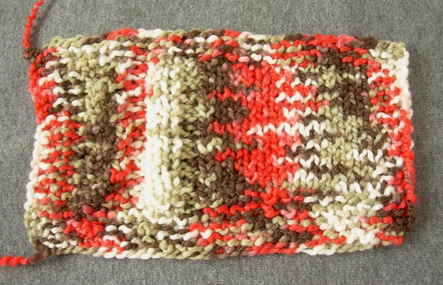 La fascetta, purtroppo mancante del riferimento alla tensione, suggerisce un ferro di calibro 5-6; infatti il mio campione lavorato con il ferro 5,5 è risultato perfettamente in tensione a 13 m × 10 cm, tensione a cui vi suggerisco di mirare. La struttura del filato, pure molto complessa, non mi ha dato alcun problema di lavorazione, mentre ordinariamente ho grossi ostacoli a lavorare i filati bouclé. La lana che scorreva agevolmente anche sul ferro di resina con cui l’ho lavorata (e che tende talvolta a fare un po’ di resistenza). Ovviamente, la definizione dei punti è scarsa, motivo per cui non ho nemmeno tentato la lavorazione traforata, ma nonostante la maglia piuttosto irregolare determinata dalla struttura a spirale, Superwash si è dimostrato piuttosto docile nel produrre coste e trecce elastiche e ben rilevate.