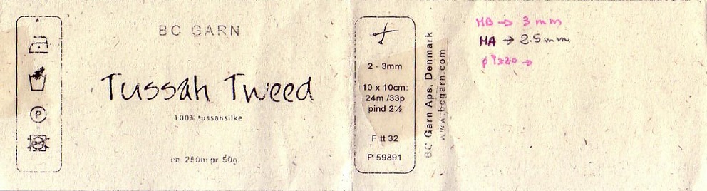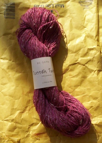 Tussah Tweed di BC garn è una pura seta bottonata che si presenta in delle matasse piacevolmente pesanti e consistenti al tatto, i fili restano ben separati e si dipanano tra le dita al momento della scelta.