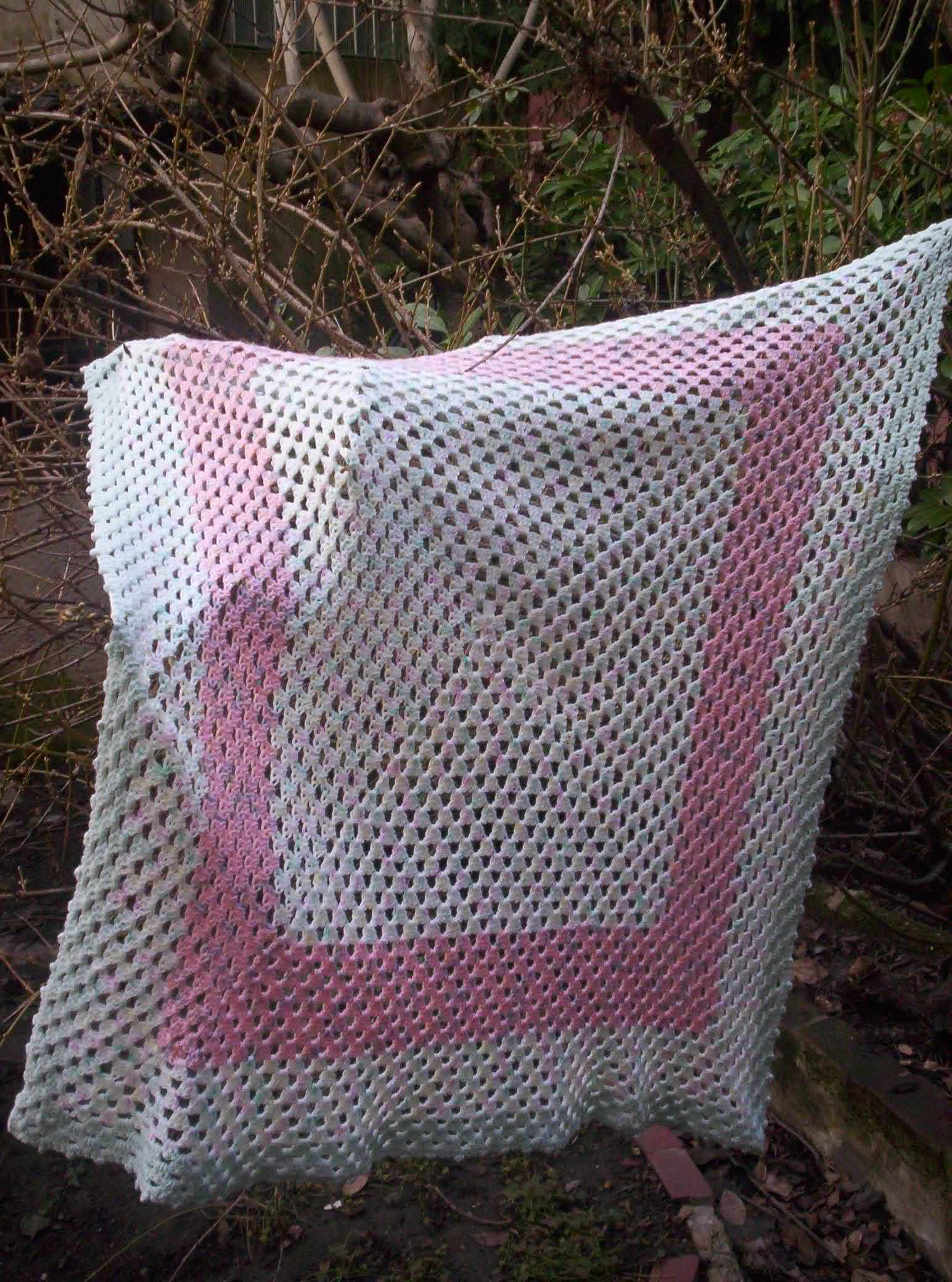 Ripetete queste istruzioni fino a raggiungere i 70 cm di altezza. Tagliate il filo e nascondete le code. La copertina è pronta.