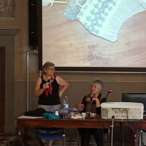 Come tutti gli anni, il gruppo Facebook Elizabeth Zimmermann all’Italiana ha organizzato la sua kermesse, iniziata a Roma e proseguita lo scorso anno ad Asiago. Un evento in costante crescita che quest’anno ha visto radunarsi a Firenze quasi un centinaio di appassionate di maglia per assistere alle due lezioni tenute dall’ospite d’onore Meg Swansen, figlia ed erede di Elizabeth Zimmermann.