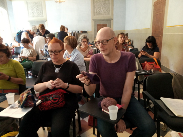 Ovviamente, l’incontro è stato anche (o forse soprattutto) anche un meraviglioso modo per incontrare persone con cui condividiamo passioni e piccole manie: un week-end interamente dedicato alla maglia e al filato in cui tutti avevano modo di condividere almeno un argomento: il lavoro ai ferri. Non una fiera dei lavori manuali che mescola in modo casuale tecniche e passioni diverse, ma un compatto evento mirato unicamente ed esclusivamente alla maglia. Un tipo di festa a cui in Italia siamo poco abituati, ma la cui mancanza è sentita da molte e molti appassionati.