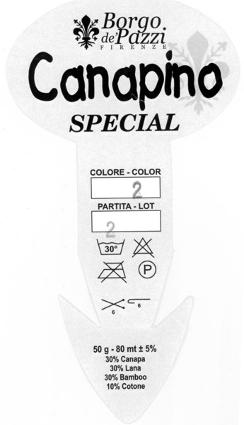 Canapino è ancora un’altra creazione di Gomitoli.com, questa volta con il marchio (toscanissimo) Borgo de’ Pazzi, e conferma la propensione di questa piccola casa pratese ai filati fantasia di grande qualità. Canapino si presenta come un morbido stoppino in una combinazione di lana, acetato di bambù e canapa, che dà il nome all’articolo, morbidamente avvolto da un sottile filo di ciniglia di cotone. La consistenza del gomitolo è soffice, spumosa, molto morbida.